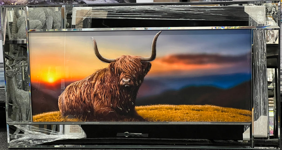 Elevate your home décor with this captivating Highland Cow Sunrise Wall Art Picture, featuring liquid art and a sophisticated mirror frame. Perfect for nature enthusiasts and art lovers, this piece brings the serene beauty of a Scottish sunrise into your living space. Stunning Imagery: Depicts a Highland cow with a beautiful sunrise background, capturing the essence of Scottish landscapes. Liquid Art Detailing: Enhanced with liquid art to create a stunning, three-dimensional effect. Elegant Mirror Frame: The mirror frame adds a touch of modern elegance, making it a perfect fit for any contemporary home.