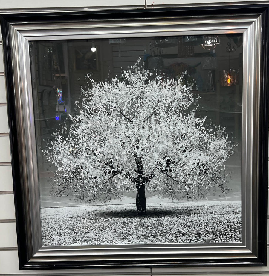 Bring elegance and serenity to your space with this stunning white blossomed tree wall art. Featuring delicate crystal accents and a glossy liquid art finish, the textured details create a luxurious, dimensional effect. The two-tone frame adds a modern touch, making it perfect for both contemporary and classic interiors. Ideal for living rooms, bedrooms, or hallways, this nature-inspired artwork adds light, sophistication, and a peaceful vibe to any room. A true statement piece for stylish home décor.