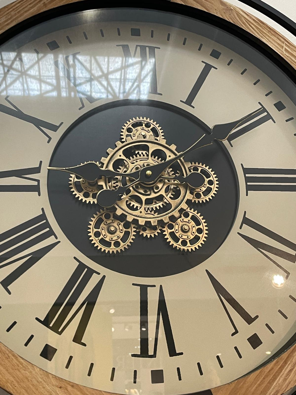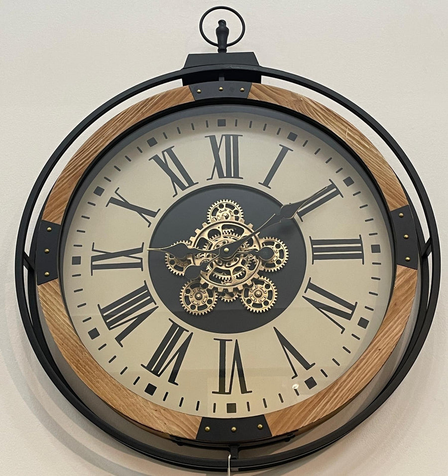 Black, rustic, Bronze Wall Clock with Moving Cogs and Roman Numerals Vintage Style