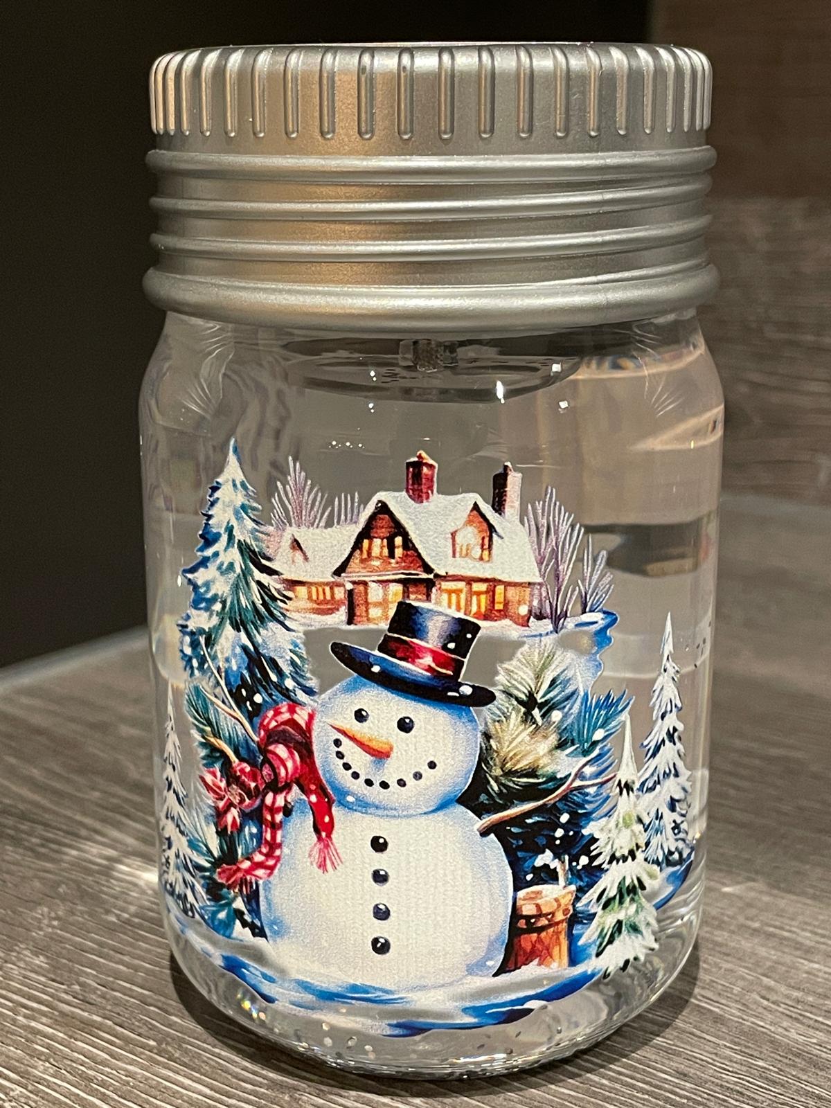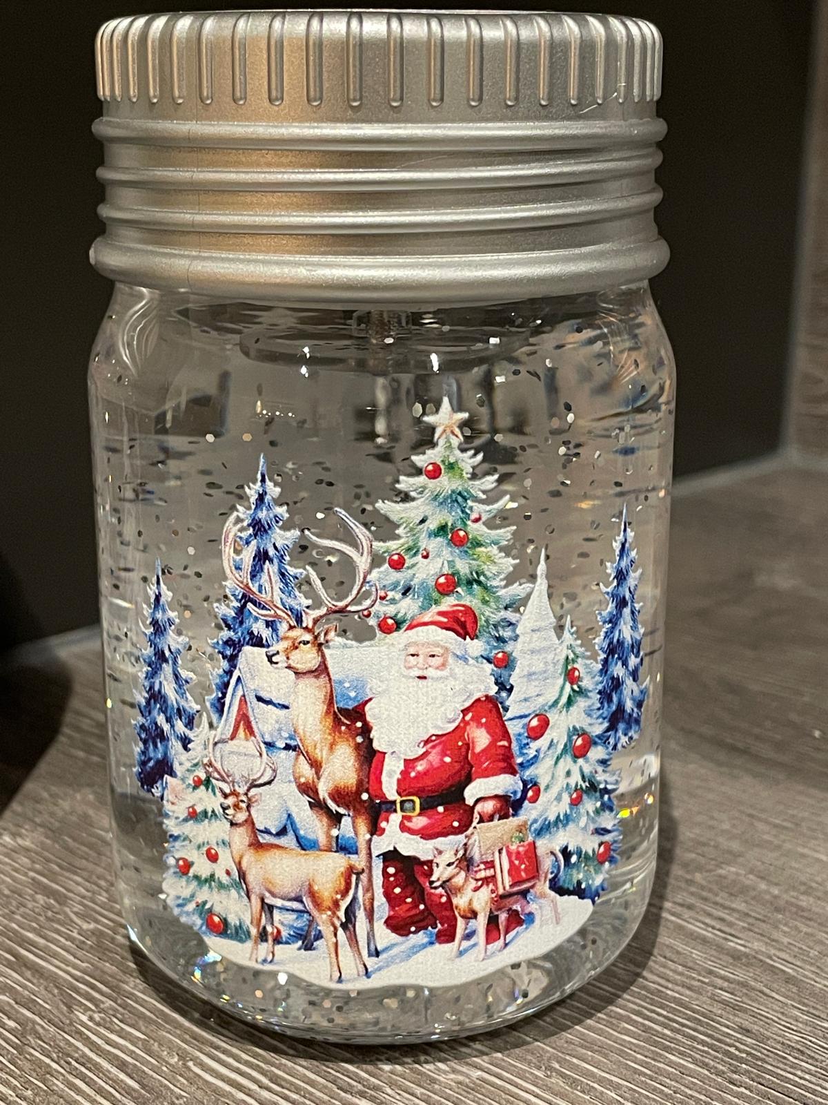 14cm LED Lit Christmas Spinner Jars Festive Decorations Santa, Snowman, train