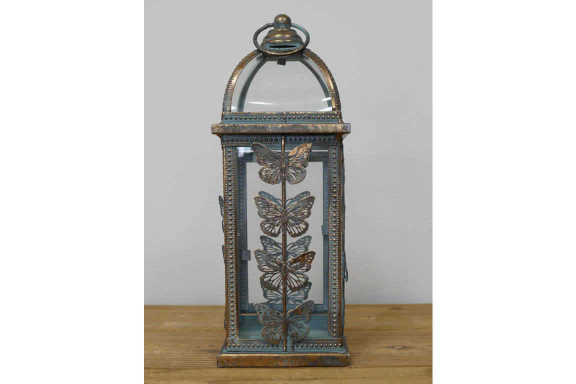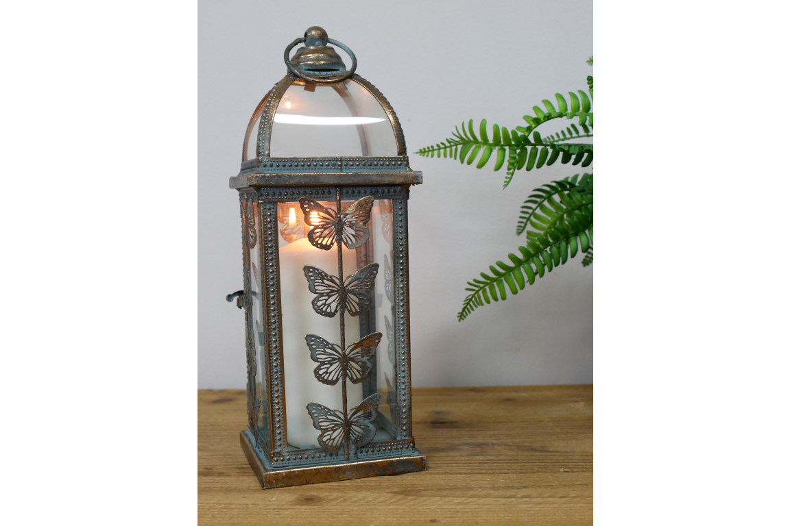Made from durable metal with a refined finish, this lantern is designed to complement a variety of interior styles, from farmhouse and rustic to modern and boho chic. Its versatile design makes it perfect for tabletops, mantels, entryways, bedrooms, or even covered outdoor spaces. Whether styled as a centerpiece for special occasions or used daily to create a cosy atmosphere, this butterfly lantern adds warmth and sophistication to your décor.