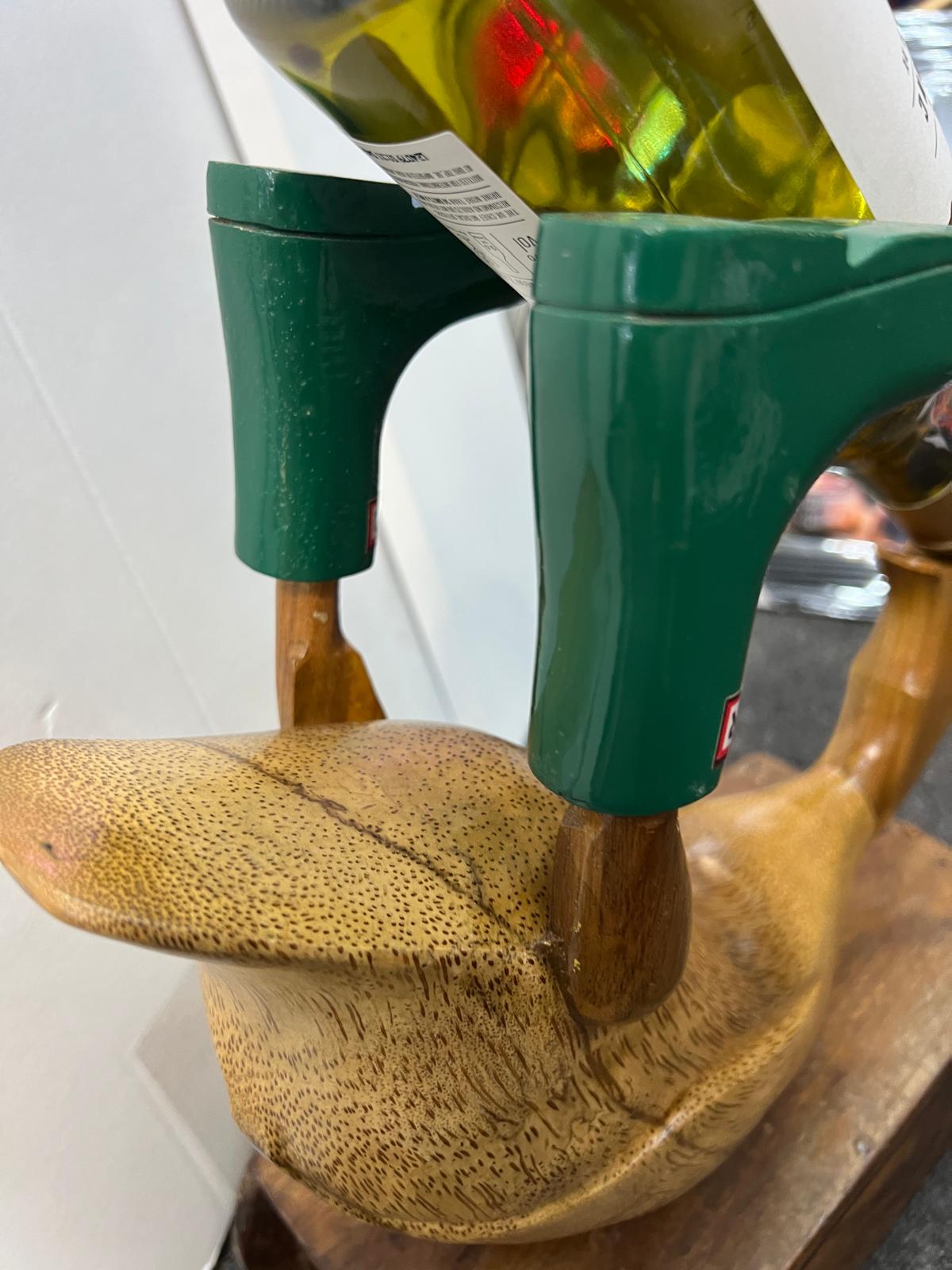 Add a touch of charm and whimsy to your home with this handcrafted wooden duck ornament, cleverly designed to double as a wine bottle holder. Each duck is carefully carved from wood and fitted with colourful painted wellies, making every piece unique and full of personality. Whether displayed on a kitchen counter, dining table, or as part of your bar décor, this delightful ornament is sure to catch the eye and spark conversation. It’s a perfect gift for wine lovers, duck collectors, or anyone who appreciates quirky, handmade home accessories. Combining rustic craftsmanship with playful design, this duck wine holder brings both function and fun to any space.