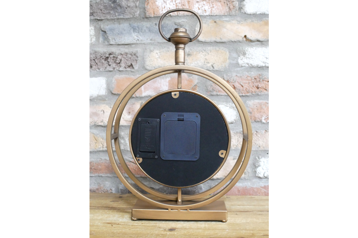 A striking vintage-style gold clock designed with a rectangular base, this piece features an intricate arrangement of exposed moving cogs that bring a sense of mechanical elegance and timeless craftsmanship. The rich gold finish gives it a warm, antique character, while the visible gears create gentle motion that adds depth and fascination. Classic Roman numerals stand prominently on the clock face, reinforcing its old-world charm and making it both decorative and functional. The overall design blends industrial detail with refined vintage aesthetics, making it a captivating centrepiece that evokes history, precision, and enduring style.