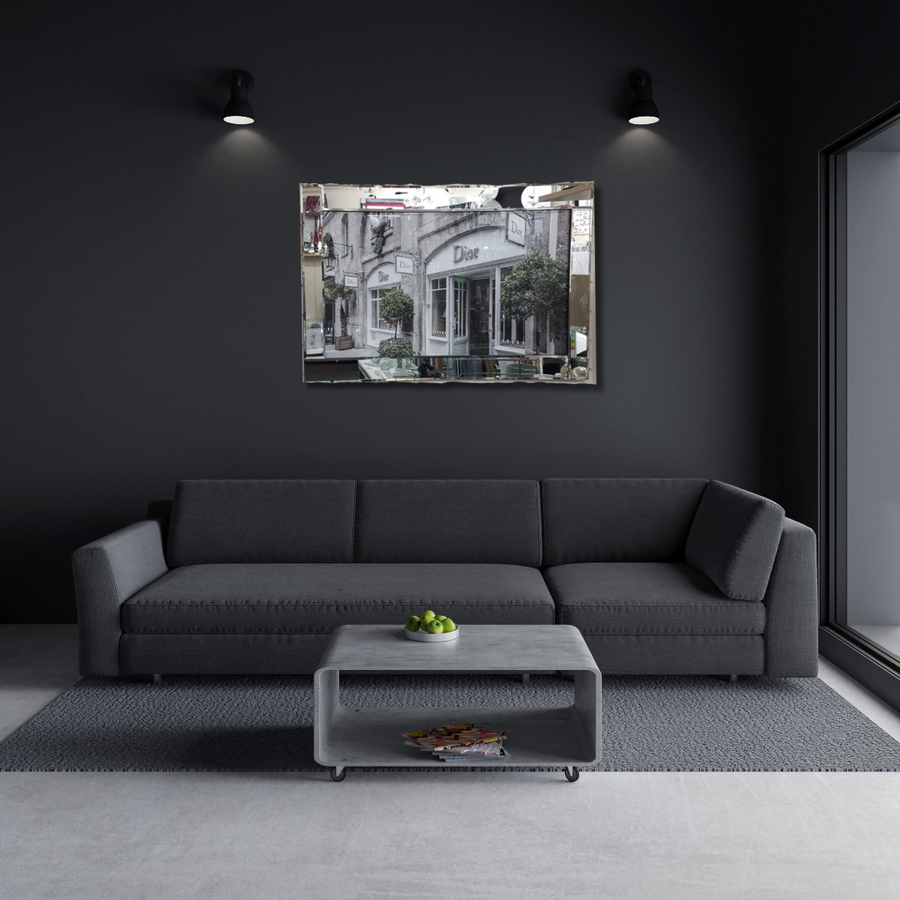 Step into a world of classic fashion with this chic 'Neutral Shop Front Design' décor, featuring the iconic Dior boutique. The liquid art and crystals accentuate the elegance of the high-fashion scene, while the mirrored frame adds a touch of contemporary luxury to your home. Why you'll love it: Designer Appeal: The Dior storefront brings a touch of Parisian luxury and style into your living space. Subtle Sophistication: The neutral tones and crystal accents create a refined aesthetic that complements any room. Modern Reflections: The mirror frame not only frames the artwork beautifully but also reflects light, adding a bright and airy feel to the atmosphere.